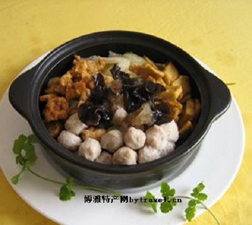 博山烩菜是一道汤菜。这道汤菜有多么地讲究,或是多么地不讲究,都是可以说出典来的。鱼肚、精肉丸、豆腐干、油炸咸肉、木耳等蔚然一锅,汤介于浑厚与清鲜之间,内有令人垂涎三尺的醇味。