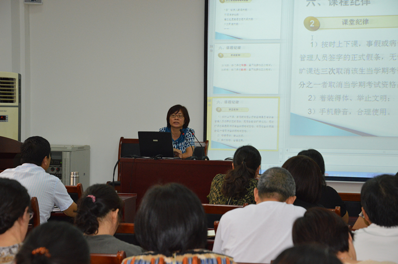 李宗政老师就大学英语课程导论作主题汇报。李老师解释了大学英语导论的重要意义,从课程简介、课程体系、教学重点、课程纪律、学习指南、考试与竞赛等方面进行了说明。强调大学英语是高等教育非英语专业大学生必修的基础课程,应注重培养、提高学生的英语综合运用能力,尤其是听说能力,使学生能在今后的工作和社会交往中用英语有效地进行口头和书面的信息交流;培养用英语做科研以及国际学术交流的能力;增强学生的自主学习能力,提高综合文化素养,以适应我国经济发展和国际交流的需要。