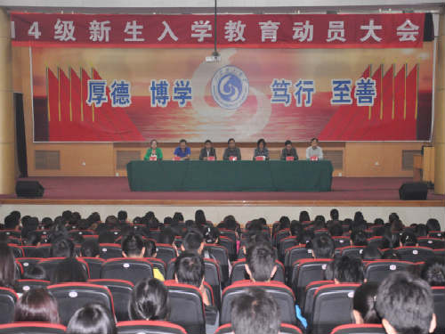 9月20日上午,我院2014级新生入学教育动员大会于3号教学楼报告厅举行。我院党总支书记李义勇,院长李静,党总支副书记卢彦峰,副院长王明新、卢连伟、牛书田,团总支书记曹晓媛及各系主任、班级导师和14级全体新生参加此次会议。