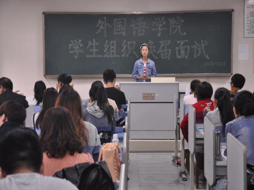 920日下午,我院于8号教学楼112114教室举行学生会、社团联合会换届会议。我院团总支书记曹晓媛、辅导员蒋育忻及学生会和社团联合会主席团成员担任此次换届面试的评委。