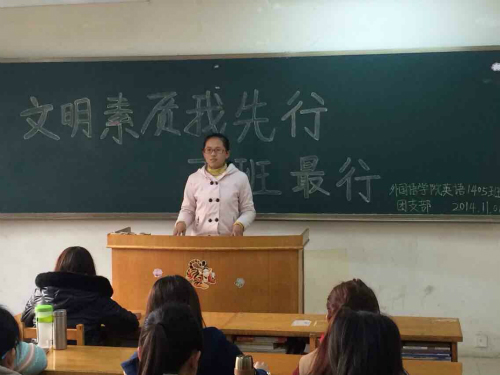 此次团课以“文明素质我先行”为主题,旨在通过学生就校园文明现象找问题、析原因、论举措,鼓励他们切实用文明带行动,践行社会主义核心价值观,以引领积极健康的校园风气;同时,活动在提升学生素养,加强学风建设,宣传文明理念方面发挥了积极作用。(朱岩 邵倩倩)