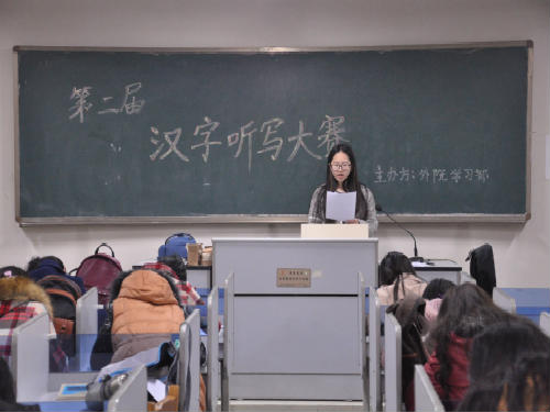 计算机的普及,使书写更简单便捷,但使许多人产生依赖症,不记生僻字词,拼音打字、百度搜索已成惯例。而汉字作为博大精深中华文化载体,是民族灵魂纽带。此次活动,意在巩固与增强同学们对母语的书写能力与学习热情,引导外院学生以优秀传统文化怡情养志、涵育文明,增强民族文化意识,构建和谐语言生活,丰富校园文化氛围,树立“国际范儿”形象。 据悉,我院于校首届汉字听写大会上力拔头筹,摘得桂冠。此次选拔赛中前四名将获院级证书并代表学院参加校第二届汉字听写大赛,而在校级比赛中表现优异者将代表学校参加山东省大学生首届汉字听写大赛比赛,望我院参赛选手积极准备再续辉煌。(陈琳颖)