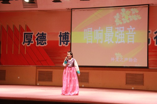 经过激烈比拼,来自音乐学院的刘丽摘得桂冠,外国语学院左润南、马莹茹荣获二等奖,电气学院张建敏、外国语学院郭心阳及国际教育学院尤利娅获得三等奖。此次比赛作为2015年外语文化节之外语竞技场的重要比赛项目之一,旨在以外文为主旋律,将娱乐与学习相结合,用歌唱的形式激发同学们学习外语的热情,丰富同学们的课余文化生活。据悉,外语竞技场系列活动将陆续展开。(撰稿:邵倩倩 摄影:刁晗 高雪梅)