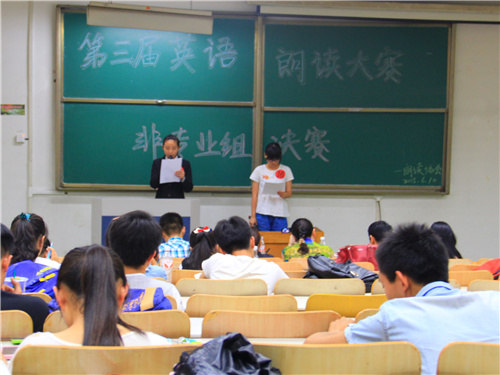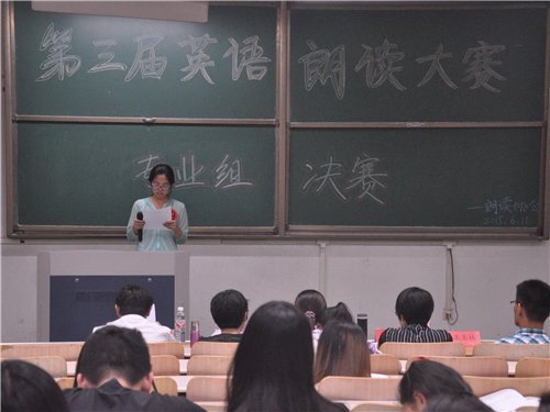 为提供给学生更多展现自我的平台,提高学生的英语口语水平,6月10日、11日晚,朗读协会于4号教学楼208教室举行我校2015年外语文化节外语竞技场之第三届英语朗读大赛。大学英语第一教研室主任副教授岳红丽,外国语学院副教授孔海燕、优秀教师高建国,全国大学生英语竞赛特等奖获得者王玉林及山东省科技英语竞赛一等奖获得者沈琪慧担任非专业组决赛评委;外国语学院英语一系主任张燕,优秀教师李金凤、鞠志慧,王玉林及山东省英语风采大赛三等奖获得者孙瑞晨应邀担任专业组比赛评委。30位非专业组选手及28位专业组选手经过层层角逐,脱颖而出。