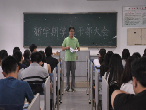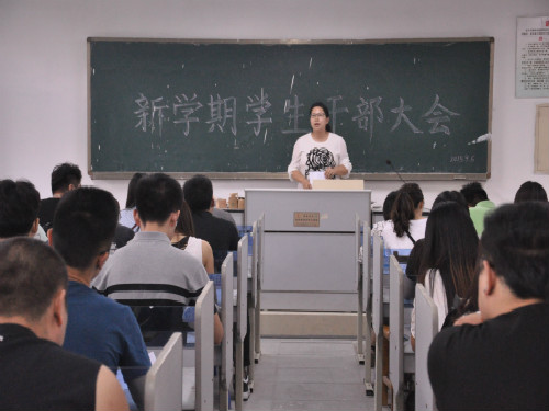 9月6日上午,我院新学期学生干部会议于8号教学楼112教室举行。学院学生会、各年级学生骨干,学生科教师参加会议。团总支书记、学生科科长曹晓媛主持会议。