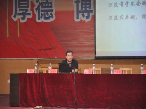 接下来,王明新展开外语学习之“我见”,就外语专业定位、就业方向及大学娱乐活动等方面展开交流。首先,他提到新生应收拾好心情,为进一步深入学习奠定基础;其次,学生要全面发展,专注于语音、词汇、语法、语篇的学习,在学习过程中逐步提高听说读写的能力,并做到专业知识的吸收与内化,养成外语范;接下来,他希望学生在学好所学专业的同时注重跨文化交际,了解异域文化,完善并提高自己,做全面发展的应用型高级人才;最后,他鼓励学生要多参加比赛及活动,丰富并锻炼自己的专业能力。