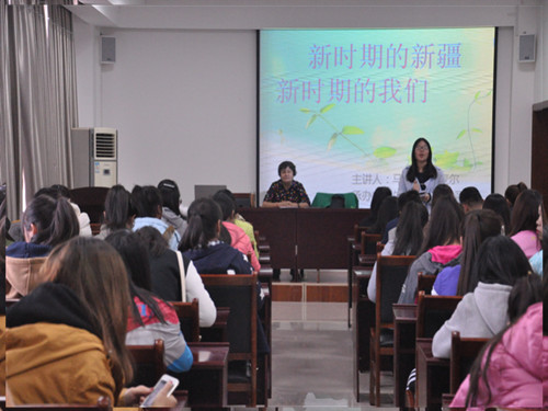 马依拉·艾麦尔以讲述自身求学历程及工作经历为切入点,鼓励同学们积极发扬新疆热情、善良、好客的品质,使新疆优秀的民族风情感染汉族同学;强调新疆教育建设需要同学们的奉献,不要忘记新疆的贫困地区,要通过自身双语优势促进新疆教育发展;希望少数民族与汉族的同学们团结互助,共创有特色、争先进的新疆班。随后,她与同学们分享作为一名特培生毕业后投入新疆工作的光荣与感悟,她坚信教育能改变一个人的人生轨迹,而教育工作者则是做出这种改变的重要力量;知其所需,明确责任,乐观宽容,积极上进,愿同学们脚踏实地,在校认真学习,掌握专业知识与技能,凭借自身能力获取劳动果实。最后,她提出对新疆班同学们的期望,希望同学们能以在我校学习为荣,劳逸结合,将自身价值带回新疆热土。真情动容的语言深深感染在场同学,赢得阵阵掌声。