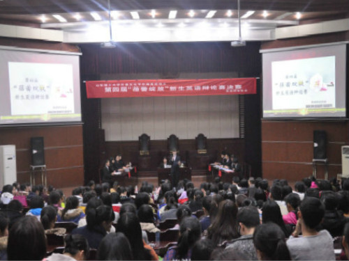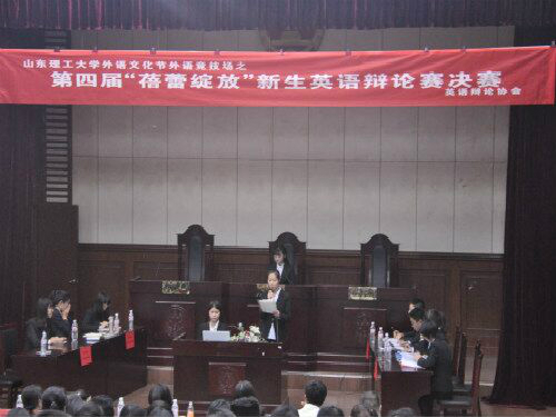 为提高学生思辨能力,激发学生英语学习积极性,11月2日晚,由英语辩论协会主办的第四届"蓓蕾绽放"新生英语辩论赛决赛于模拟法庭举行。外国语学院党总支书记李义勇、副院长王明新等担任嘉宾。英语辩论协会专业指导老师毛毳、外籍教师Anna、优秀教师刘雅敏、彭静、郑海舰、曹晓媛、“外研社”杯校园选拔赛亚军李征南担任评委。