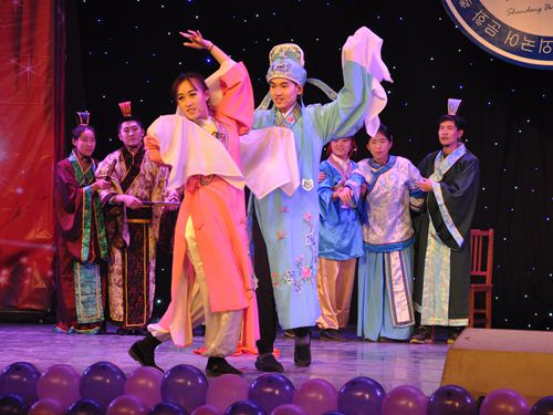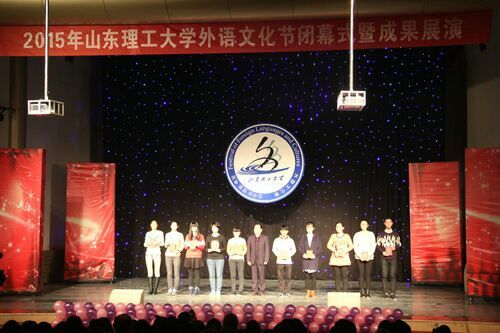 12月10日晚,由校团委、教务处主办,外国语学院、国际合作与交流处承办的2015年外语文化节闭幕式暨成果展演在音乐学院音乐厅举行,至此,我校2015年外语文化节圆满落幕。校党委书记都光珍、副书记张宇声、副校长胡兴禹、淄博市人民政府外事侨务办公室党组副书记、副主任魏向群,校党委(校长)办公室主任迟沂军、党委宣传部副部长徐启达、校报社长穆冠成、教务处副处长杜言利,校国际合作交流处、国际教育学院副院长周国宝,学生工作处副处长王玉冰、团委副书记刘晓东、鲁泰纺织集团国际业务部经理潘平利、淄博秋实外事翻译公司总经理李金成、淄博迈点教育信息咨询有限公司总经理李凯及外国语学院班子成员等出席闭幕式暨成果展演现场。