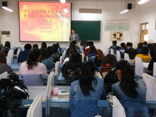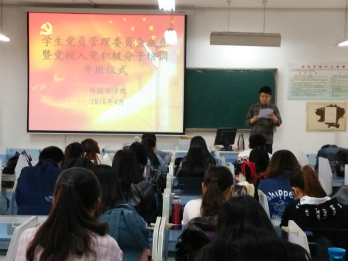 4月7日下午,外国语学院学生党员管理委员会成立暨党校入党积极分子培训开班仪式于8号教学楼116教室举行。学院党总支书记李义勇,团总支书记、学生科科长、学生第一党支部书记曹晓媛,学生第二党支部书记吴鹏,学生科朱婷婷、朱岩及学生党员管理委员会成员、各入党积极分子参加此次仪式。朱岩担任主持。