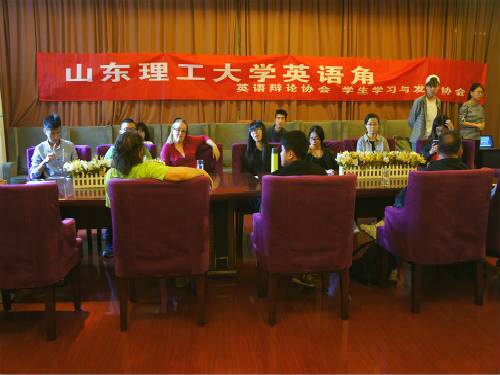 为激发同学们学习英语的热情,提高英语综合水平,4月21日下午,外国语学院英语角活动于大学生事务中心106室举行。此次活动由大学生事务中心、国际合作与交流处主办,英语辩论协会、学生学习与发展中心、商学院学生会学习中心承办。四位外教及来自各个学院的英语爱好者积极参加。
