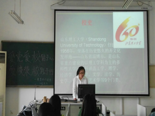 值此山东理工大学建校六十周年来临之际,为引导广大团员青年增强知校、爱校、荣校的使命感和责任感,纪念五四运动97周年,在团总支悉心指导与精心组织下,外国语学院英语1401、英语1405、朝语1401、日语1401、日语1402班团支部联合学院宣传中心,特开展最美的时光遇见你——“爱校荣校”系列主题团日活动,通过“爱校荣校”主题演讲、校史知识竞答、拍摄《走过我来时的路》青春微电影献礼我校六十周年校庆。