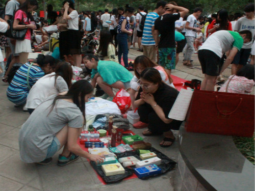 在学生会各个部门的积极配合下,此次活动开展得井然有序。相比第一期,第二期摊位数量明显增多,百余个摊位吸引了络绎不绝的同学们。售卖商品除教材、参考书、杂志外,衣服、鞋子、电脑包、零食等也轮番上阵,从教辅资料、期刊杂志到衣装饰物、生活常备,商品应有尽有。各种吆喝声不绝于耳,大叫大卖,吉他弹唱,买一赠一,同学们均使出浑身解数推销商品。与此同时,前来购物的同学精挑细选,货比三家。有同学表示在此次市场收获不小,购得不少心仪的物品。值得一提的是,外国留学生也参加了此次活动,将国外衣物食品和美食带到市场,不仅加强了同学们之间的交流,更带来了一场文化盛宴。现场氛围热闹非凡。