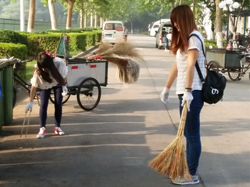 在最后卫生打扫中,同学们各自拿着卫生用具,整齐划一地在卫生区域内打扫。有的负责马路的垃圾灰尘清扫工作;有的负责体育场跑道内的清理工作;有的负责垃圾桶的倾倒工作,同学们分工明确,同时彼此间又相互合作,互帮互助,体现出对工作高度认真负责的态度。随机采访其中一名同学,该同学表示通过此次活动,收获颇多,既增强其劳动意识,又帮助自身形成良好行为习惯。