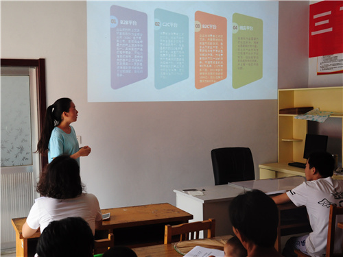 下午,宣讲活动正式开始,实践团科技宣讲负责人对团队进行简要介绍,并对村民的积极配合表示感谢。随后,宣讲人从时代背景、销售模式、发展机遇、成功案例、前景展望等五个方面深入浅出地为村民进行讲解。基于前期充分调研准备,宣讲人就当地现有的电商平台“哈哈农庄”及当地特色农产品——辣椒、食用菌的市场行情进行详细介绍,同时以“三只松鼠”坚果品牌为缩影,介绍B2C该电子商务模式。宣讲人借助宣传片与村民进行互动,活跃现场气氛,获得村民阵阵掌声。实践队员与村民合影留念,宣讲活动结束。