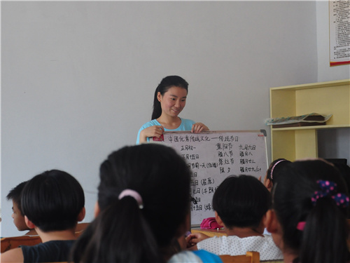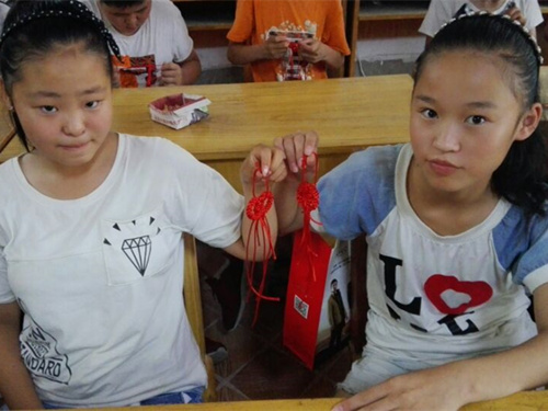 队员同时注重传统艺术的教育和学习,专门教授孩子们基础书法知识。竖勾撇捺,每一笔均蕴含浓浓中国味道,承载着源远流长的中华优秀传统文化,意在带领孩子们深切体味中华优秀传统文化的博大精深。同时实践团开设中国结编织课,孩子们认真将一条条红色丝带互相交织,紧紧打结,似乎将自己心中小小的梦想和愿望凝聚在中国结上,交织起中国梦。传统节日同样是中华优秀传统文化的重要一部分,实践团开设传统节日普及课,队员们给孩子们介绍了端午节、重阳节、春节等传统节日的起源及习俗,使传统文化更好融入到现实生活中。