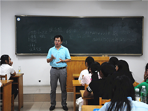 此次班级导师见面会于和谐融洽氛围中开始。首先,2015级两名英语专业学生与在座同学分享大学生活经历,向他们详细介绍英语学习方法,为同学们提供来自“学姐”的丰富经验。随后,郑海舰与同学进行亲切交流,列举了一些目前新生易出现的问题,并细致讲解如何去克服上述问题,同时采取有效措施来减少对学习的冲击。他表示,大学期间应以学习为重,积极寻找有效学习方式,养成上课认真听讲、下课及时练习的好习惯。他也希望同学们在大学共同学习、生活的过程中,团结友爱,互相帮助;无论是学习,还是生活,只要有问题均可找班级导师寻求帮助,教师们也将真诚为同学们提供服务。最后,郑海舰解答同学们提出的近期疑惑和困难,对英语书写、英语专业四级考试等问题均做了详细解说。他幽默风趣的言论获得同学们的热烈掌声。见面会在轻松愉悦的谈笑声中结束。