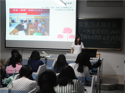 会议伊始,李欣欣向新生们简要介绍社会实践的含义、作用、意义。通过参加社会实践,同学们可以提高实践能力及综合素质,为以后正式步入社会打下良好基础。随后,十支优秀队伍轮流讲述其实践感悟,并解答新生们的疑惑。作为山东省“三下乡·千村行动”项目队伍之一、校级精品团队,“蒲公英”社会实践团从前期准备、实践内容、实践成果、宣传报道四方面阐述苦亦有乐的实践活动。宣讲人借助精彩纷呈的实践图片及趣味活动视频充分呈现他们的德州之行。以“齐绘美丽画卷,共享健康人生”为主题的“生态之旅”实践宣讲团主要聚焦生态文明建设,号召人们从自身做起保护绿水青山,共建美好家园。宣讲人认真讲述其实践收获,希望同学们也能从社会实践中增长才干,为社会贡献自己的力量。此外,“We Are the Best”实践团以“全面二孩”政策为切入点展开细致调研。宣讲人用幽默风趣的口吻向同学们介绍实践乐趣及心得,赢得同学们掌声不断。“青春无畏”社会实践团以智能手机使用为切入点展开调研。在宣讲过程中,宣讲人着重强调社会实践选题的重要性,乐鱼网页版如何选好题目,他也分享了自己的经验。其他几支优秀团队也分别就上述内容讲述各自感悟,感叹社会实践带给团队成员的成长。最后,此次报告会在李欣欣的总结中结束。