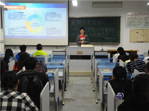 会议伊始,李欣欣向新生们简要介绍社会实践的含义、作用、意义。社会实践虽是大学生活的一部分,却是不可或缺的重要一环。通过社会实践,同学们将收获成长,获得友谊,增长经历。随后,十支优秀队伍轮流讲述其实践感悟,并解答新生们的疑惑。校级精品团队“蒲公英”社会实践团对2015年及2016年社会实践做出对比,展示社会实践内容,介绍两次社会实践的不同亮点,借此号召同学们积极投身社会实践。宣讲人还借助精彩纷呈的实践图片及趣味活动视频展现他们的德州之行。“生态之旅”实践宣讲团主要聚焦生态文明建设,号召人们从自身做起保护绿水青山,共建美好家园。他们亲身走入各个街道、村庄调查当地生态环境,沿途他们了解了不同程度的环境破坏,也增强自己环境保护意识。此外,“We Are the Best”实践团从“全面二孩”政策入手,联合不同专业的优秀人才共同展开细致调研。“青春无畏”社会实践团从智能手机使用入手进行调研。在宣讲过程中,宣讲人告诉同学们如何正确选择社会实践主题,结合自己往年经历分享自己选题技巧。其余几支优秀团队也分别陈述各自社会实践内容,分享社会实践中的点滴,向同学们传授经验与技巧。