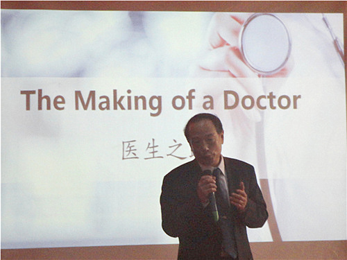 张增做开场发言,开启此次汇演。学院代表李继刚发言,以梦想为话题契机点引入David Thomas的医生之路。英语情景剧The Making of a Doctor(《医生之路》),以话剧形式讲述一位立志从医的青年人David Thomas在医学院求学、毕业求职面试、进入淄博市中心医院后的日常工作,及至业务日臻成熟,参加国际学术见面会的过程,成功展现一名职业医生的学习、工作与成才之路。