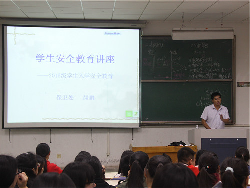 为增强大学生安全意识,提高其自我防护能力,我院于10月12日晚在4号教学楼105教室举行学生安全教育讲座。此次讲座由保卫处教师郝鹏主讲,2016级学生听讲。