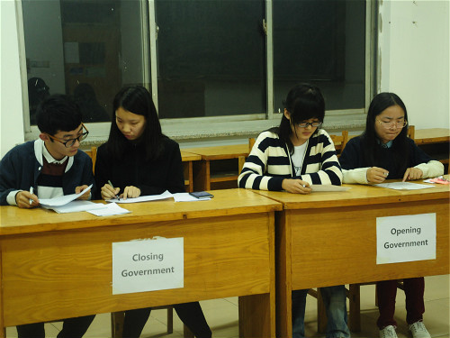 比赛室内,正反两方分坐两边,逐一上台演讲,尽展各人风采。