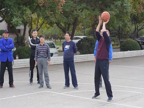 21日进行的定点投篮中,教师踮起脚尖,全身肌肉绷紧,为最后的一跃蓄力。手掌托举着篮球蓄势待发,周围老师均注目着他。还未比赛的教师们在一旁摩拳擦掌,为接下来的比赛做准备以充分发挥自身实力,体现出教职工勇于竞争的体育精神。