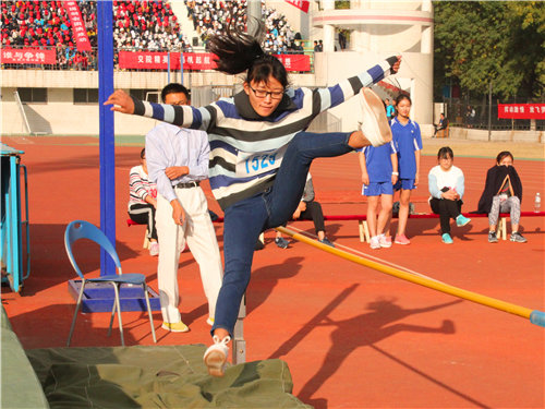 经过初赛的激烈比拼,王瑶如一匹黑马,晋级跳高决赛。因为与其他进入比赛最后阶段的运动员多采用“背越式”不同,她在比赛的整场过程中全部使用“跨越式”跳高。“跨越式”跳高会在无形中增加需要提高的重心高度,比“背越式”需要用更多力,这也体现出她过人的跳高天赋。赛场上,王瑶每一次奋力助跑,轻盈一跃,均赢得观众赞叹不断。在得知自己获得跳高第一名时,王瑶非常激动并且表示明年会继续参加比赛,争取破纪录,为学院争光。