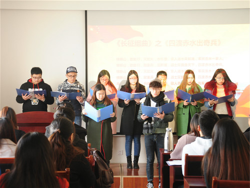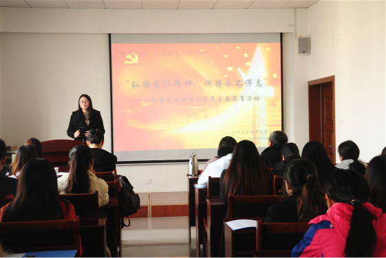 为提高党员素质,将“两学一做”学习教育活动引向深入,同时更好地贯彻和发扬长征精神,走好新时期的长征路,11月10日下午,外国语学院学生支部 “两学一做”主题教育活动暨纪念红军长征胜利80周年系列主题教育活动于8号教学楼418室举行。此次活动主题为“弘扬长征精神,拼搏永不停息”。校党委组织部正处级专职组织员王文峰、学院第二支部书记朱岩出席,该院全体学生党员参加。
