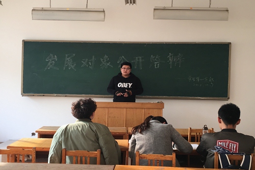 为考察学生党员发展对象对党理论知识的了解程度并进一步加强入党教育工作,11月17日下午,我院学生第一、二党支部党员发展对象公开答辩会分别在8号教学楼307、308教室举行。学生第一党支部书记曹晓媛、学生第二党支部书记朱岩、各支部党员及全体党员发展对象参加答辩会。学院学生党员代表负责记录答辩内容。