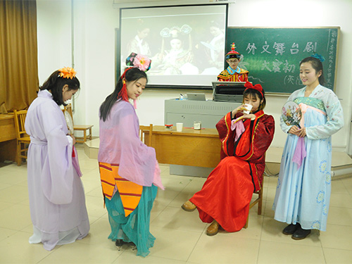 聚集了英教、英语、体教和英专这4个专业的7位参赛选手,《甄嬛外传》的剧情被他们完美诠释。横行霸道的华妃和心思缜密的甄嬛被他们演绎得惟妙惟肖。