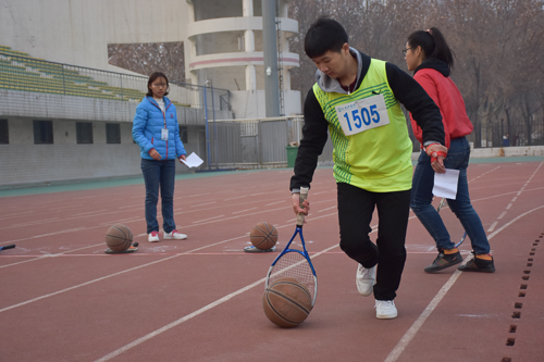 最后一个环节,运动员需要用网球拍将球运至指定地点。在这一过程中,学院运动员小心翼翼地运球,展现出顽强拼搏、不言放弃的优秀素质。