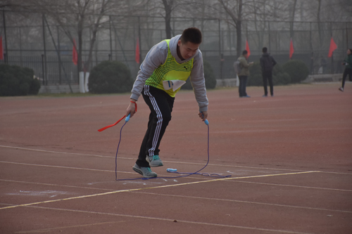 第二环节,运动员需跳绳前进。一根小小的跳绳在他们手中汇聚成学院学子前进的动力。