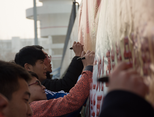 各学院运动员代表庄严地在海报上签下自己的名字,纷纷表示将在比赛中充分发扬顽强拼搏的体育精神。