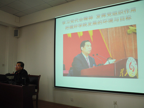 为促进全体党员学习党代会精神,发挥党组织作用,把握好学院发展方向。12月8日下午,外国语学院于8号教学楼418教室举行学习贯彻学校第三次党代会精神专题党课。党总支书记李义勇出席此次会议并担任主讲,学院全体党员参加。