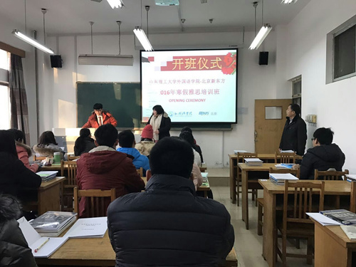 1月14日上午,外国语学院-北京新东方2017年寒假雅思培训班开班仪式于8号教学楼举行。我院副院长牛书田主持开班仪式。