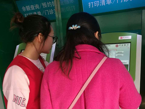 当天服务活动中,志愿者的主要工作是为病人答疑解惑,协助其就医,包括为他们指引方向、打印化验单、帮助测量血压等。