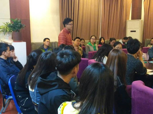 3月16日下午,2016-2017学年下半学期第一期英语角于大学生事务中心106教室举行。此次活动由大学生事务中心、国际合作与交流处主办,我院英语辩论协会、学生学习与发展协会及商学院学生会学习中心承办。此次英语角活动由加拿大外教Mr.BradDavis与美国外教Ms.MadelineGoodman担任嘉宾,来自各学院的英语爱好者参加此次活动。
