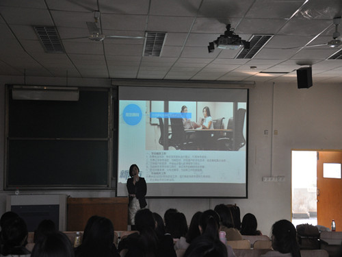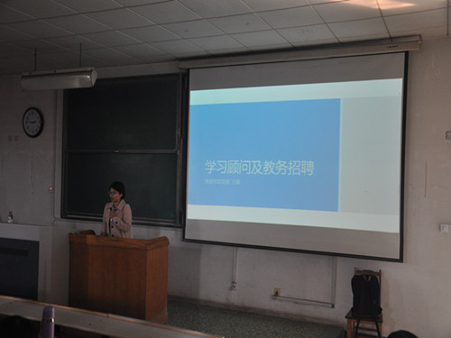 招聘会伊始,刘轶尧播放一段有关新东方创建的视频,让同学们大致地了解新东方。接着,他向同学们介绍新东方的各个部门、招生人数以及新东方曾经经历的几大困境,带领同学们回顾新东方的历史。李芳向同学们介绍本次招聘的对象,招聘对象主要针对英联邦项目部,职位包括规划顾问、学习顾问以及雅思老师。她对这几个职位作了详细介绍,让同学们对此次招聘会有更深的了解。
