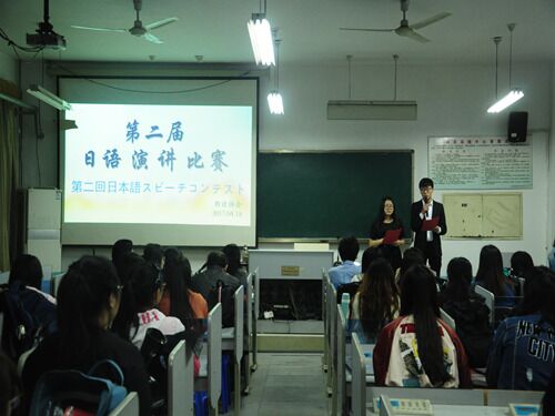 为进一步提高同学们日语口语水平,激发学习兴趣,4月18日晚,我校第二届日语演讲比赛暨泰山杯济南地区高校日语演讲大赛选拔赛于8号教学楼112教室举行。此次比赛由外国语学院朗读协会主办,学院日语系主任马婷婷,日语外教中山淳子、成俊男,优秀教师赵文静、夏晓辉、周霞、张媛等担任评委。十名优秀选手参加此次比赛。