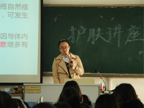 为保证学生身心健康并提高自身自信心,4月20日下午,我校礼仪与彩妆协会在8号教学楼216教室举行护肤讲座。外国语学院学生积极参加此次活动,淄博市第六医院皮肤科医学硕士于昕鑫担任主讲人。
