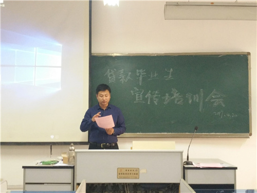 4月20日下午,我院在8号教学楼112教室举行与毕业生息息相关的贷款毕业生宣传座谈会,校资助中心教师张生元任主讲人。