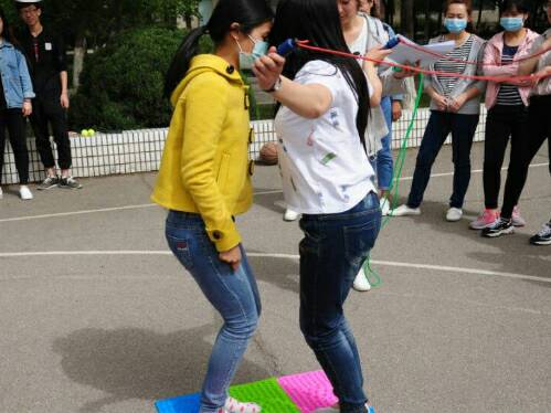 托网球跑接力由组内成员共同完成,比赛中他们互相帮助,互相配合,体现其默契程度,使参赛者放松心情、收获欢乐,拉近距离。两人指压板跳绳既考验参赛者体力,也考验其毅力。两位同学光脚在指压板上跳绳,忍痛坚持完成任务。整个比赛气氛激烈又不失轻松愉快,同学们尽力完成每一项项目,全身心地投入到比赛中,散发青春的光芒。