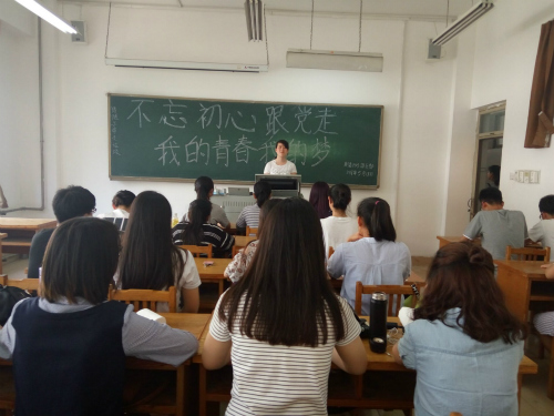 为加强同学们思想教育,提升品德修养,5月18日下午,外国语学院在8号教学楼举行“不忘初心跟党走,我的青春我的梦”主题团课。学院2015级、2016级学生积极参加。