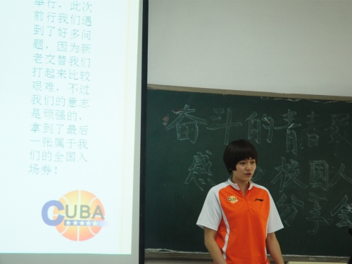 宣讲会伊始,主持人简要介绍三位宣讲人,概述活动主要流程。宣讲人依次上台进行事迹演讲。首先,曹书鑫以展示PPT及播放视频的形式介绍自己生活的点滴:一场意外让他失去健康,身体的疼痛、心灵的孤独一次次冲击他的内心,但他并没有放弃,而是选择直面困难。曹书鑫通过讲述自身经历激励在场同学积极面对生活,勇敢克服挫折,他的坚韧展现出当代大学生勇敢无畏的精神风貌。李进以PPT为媒介,展现女子篮球队艰苦训练、积极备战的励志之路。女篮的姑娘们用她们的拼搏与汗水闯进全国12强,为我校赢得荣誉;她们用不懈的努力和毅力同命运斗争,为同学们树立榜样。