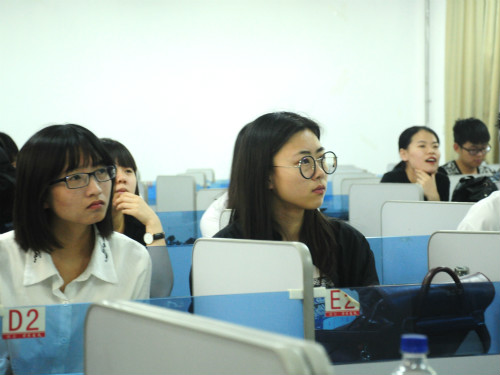 讲座伊始, 角田祥子向同学们简单介绍了日本几所大学,主要包括国立大学和私立大学。她更对两类大学的招生要求作了详细讲解。国立大学对学生的要求较高,对学生日语考试成绩、学生英语水平、数学及理科成绩等有一定硬性要求,关注面较私立大学广。随后,角田祥子对留学生考试的时间、相关流程、收费标准、难易程度及其重要性一一进行阐释,并提出了一些可行的建议。在讲座中,角田祥子着重强调有出国留学的意向的同学要确定好自己的研究方向。同学们个个聚精会神,专注地听讲。之后,角田老师对于同学们提出的一些问题耐心地进行了答惑。同时,她还给同学们放映了一些有关日本的图片,比如书店、教室、街道等,目的在于使同学们可以更多方面了解日本。