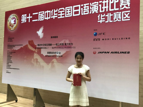 6月3日,第十二届中华全国日语演讲大赛华北赛区预赛在天津外国语大学举行,来自天津、河北、山东、山西和内蒙古五省市的27所高校的优秀选手参加了本次赛事,我校外国语学院日语专业2014级学生庄雅获得二等奖,在参赛的山东高校中位居第一。