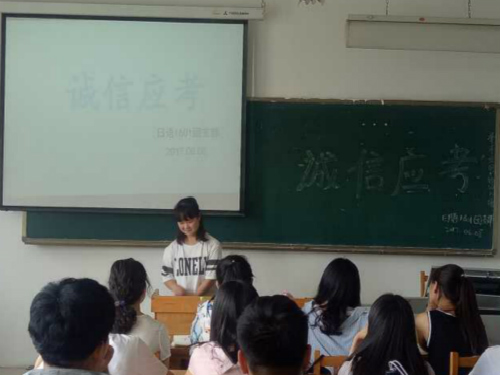 为深入学习习近平总书记系列重要讲话精神,提高团员个人素质,6月8日下午,外国语学院在8号教学楼开展“诚信应考”主题团课活动。学院2015、2016级学生积极参加。
