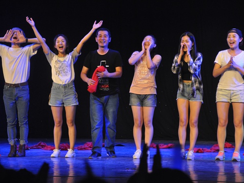 在《小手拉大手》《你给我听好》和日文歌《我只在乎你》等歌曲中,晚会渐渐接近尾声。最后,2015届主席团成员为同学们献上诗朗诵《再见,外院》,慷慨激昂,声情并茂地倾诉着对母校和学院的眷恋不舍之情。