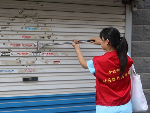 实践团成员到达梅苑社区后,社区负责人热情接待并为实践团成员分发了矿泉水以示慰问。随后负责人将实践队员分为三队,实践队员分别领取必要的清理工具,由社区工作人员带领,到三个不同的区域开始了对梅苑社区的广告清理工作。